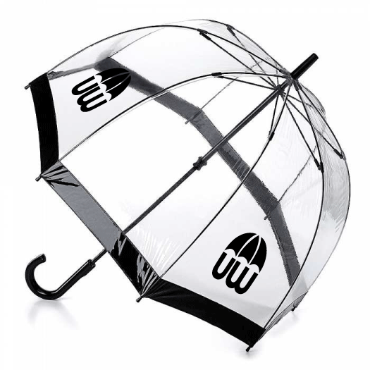 Apart from printing on our wide range of umbrellas and offering full bespoke options, we specialise in PVC printing for clear umbrellas. Due to the fabric, this process is very time-consuming. Contact us for a quote.