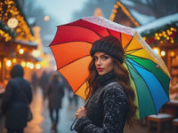 Ladies Walking Length Pagoda Umbrella with Tassel Detail - Rainbow Colours